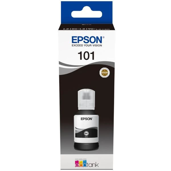 Epson 101 Black EcoTank Original Ink Bottle delivers professional-grade printing performance for your compatible EcoTank multifunction printer. This genuine C13T03V14A cartridge ensures vibrant black output with consistent quality across documents and images. Designed for high-volume printing, the EcoTank system minimizes ink costs while maintaining reliability. Compatible with a comprehensive range of Epson EcoTank L-series printers, this original ink bottle guarantees optimal printer functionality and longevity. Choose authentic Epson supplies for dependable results.